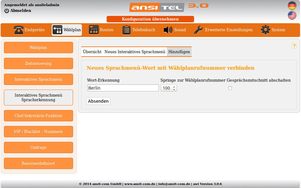 Wörter werden durch Spracheingabe des Anrufers erkannt.